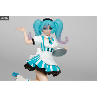 In addition to her idol job, Miku Hatsune found a little extra job as a waitress in a cafe. She put on her outfit, her roller skates and took her tray, so she is ready to come and take your order. Who wouldn't dream of having such a cute waitress?