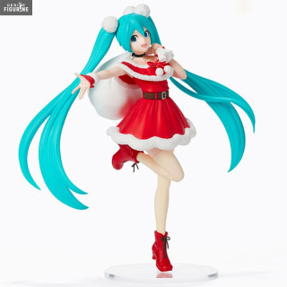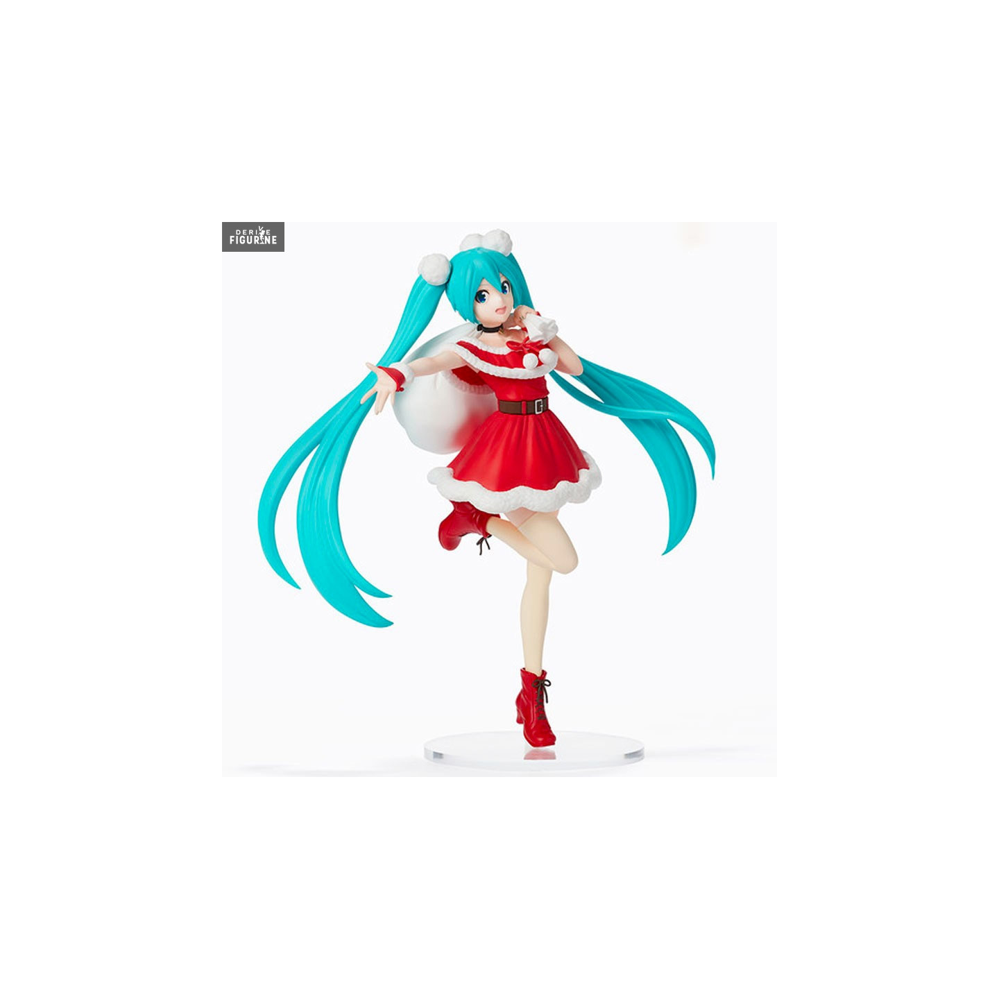 She has put on a red and white outfit and is holding a bag full of gifts on her shoulder. You guessed it, our dear Miku Hatsune has decided to take on the role of Santa Claus. The elastic bands in her hair make her think of snowballs and what is certain when she sees her like that is that the real gift is her.