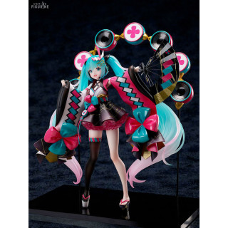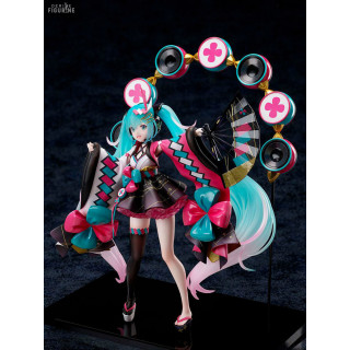 Official figure of Miku Hatsune in PVC which measures approximately 23 centimeters high, scale 1/7. The manufacturer is FuRyu.