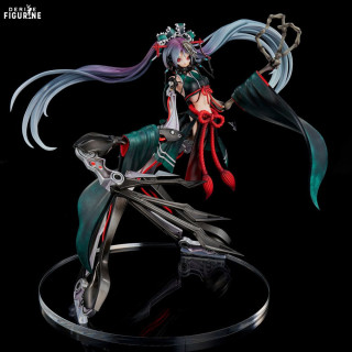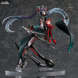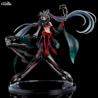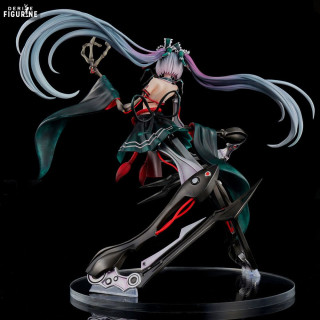 Created by Deino, Calne Ca is a nightmare-fueled take on Hatsune Miku from the Vocaloid universe. More than a simple variant, she’s a reimagined character that blends machine and madness. In this Japanese-inspired edition, she wears a kimono-like outfit with long flowing sleeves, red cords, and floral hairpieces—twisted into a dark, futuristic form.