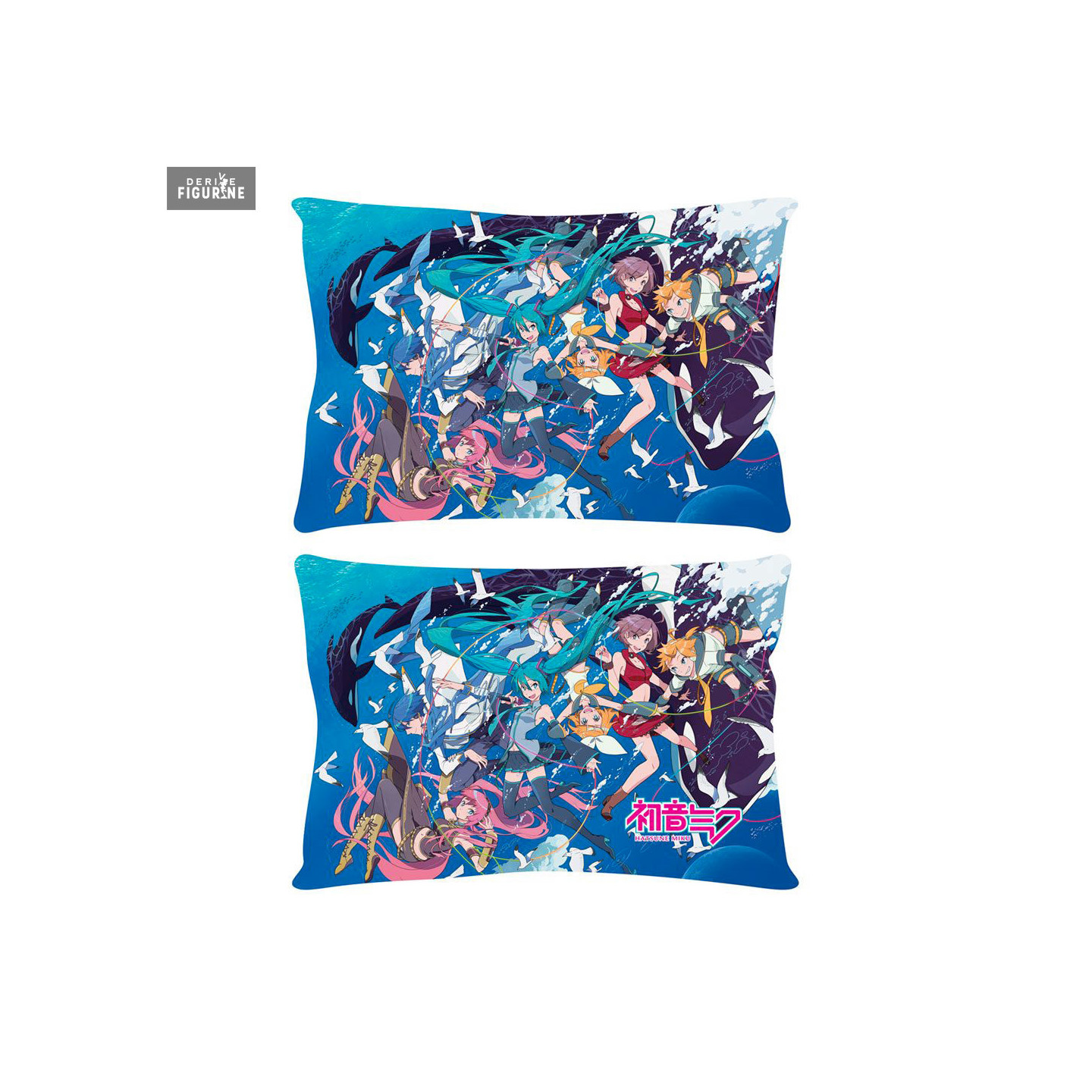 Dive into the depths of an enchanting aquatic world with this official Hatsune Miku pillow from the Ocean collection. This vibrant and detailed design features Hatsune Miku and other iconic Vocaloids in a dreamy marine setting, where waves and sea creatures intertwine with the elegant silhouettes of the characters. With her blue hair flowing like waves and a color palette evoking the mysteries of the ocean, this pillow captures both Miku's grace and energy.
