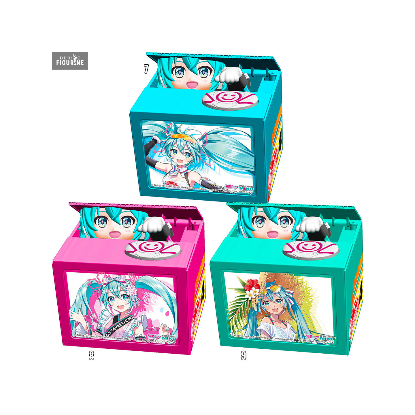 Three new Hatsune Miku GT Project Racing Miku 2021 Chatting Bank figurine money boxes and you have the choice between three models 7, 8 or 9. The money boxes are sound and require 2 AA batteries not included.