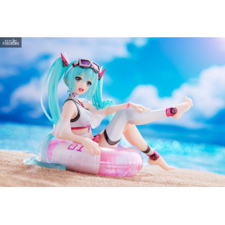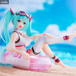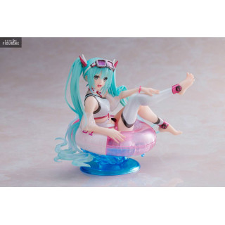 The famous Vocaloid Miku Hatsune is having a good time at the pool or the sea in this realization of the Aqua Float Girls collection where she is comfortably installed in her buoy. Miku is here wearing her Wonderland outfit and the whole thing is really too kawaii!