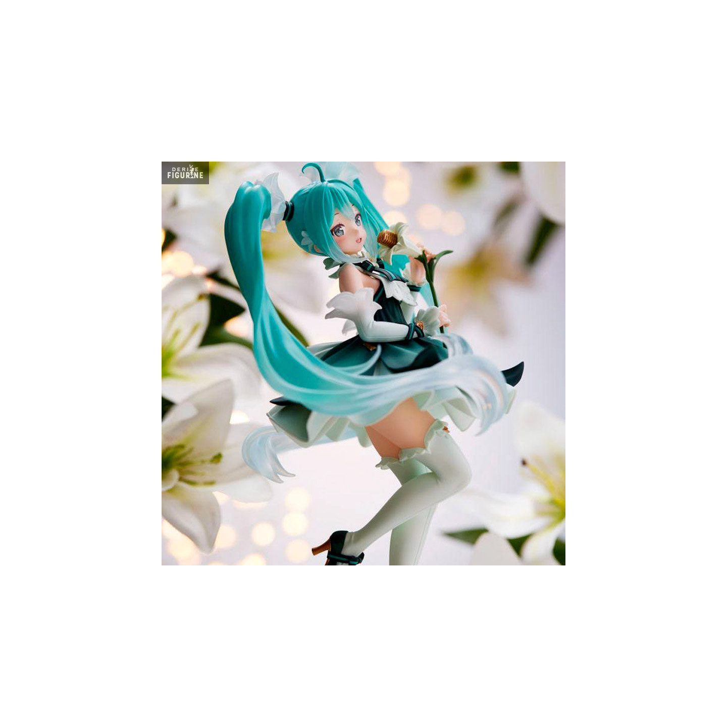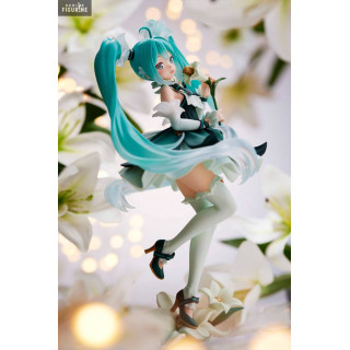 This new Miku Hatsune figure is super cute and fresh. She is surrounded by fleur-de-lis, both on the base and in her outfit and this gives a very delicate rendering. So if you were looking for a statuette of our dear vocaloid to add to your collection, this one will be perfect.
