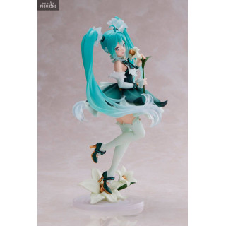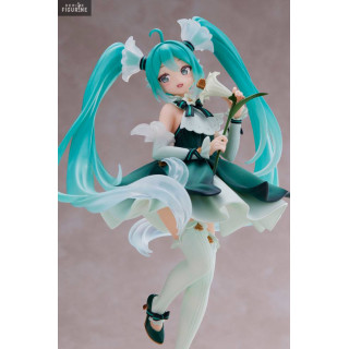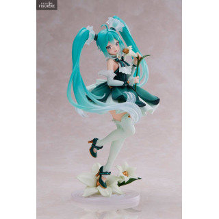 Official figure of Hatsune Miku in PVC which measures approximately 18 centimeters high. The manufacturer is Taito.