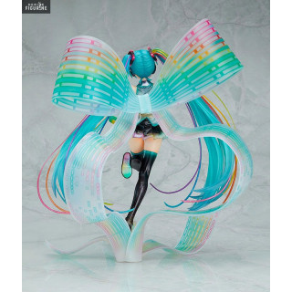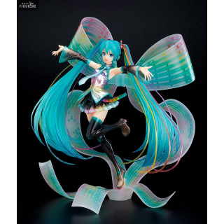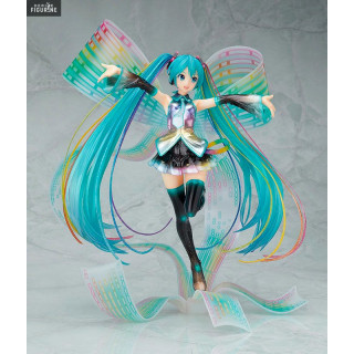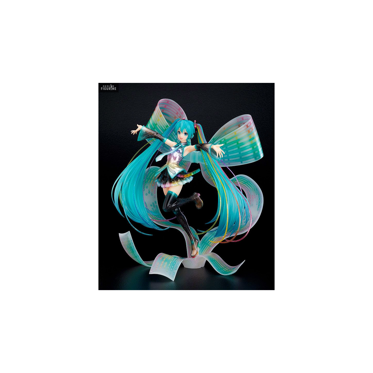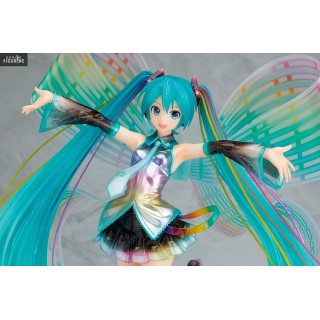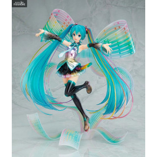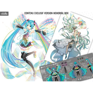 Miku Hatsune is already 10 years old and for the occasion, she dressed with rainbows. You can also see in his back a big knot. It is available in two different versions: a classic and a second Memorial Box. The latter is sold with a book in A4 format that transcribes a bit of the story of Miku.