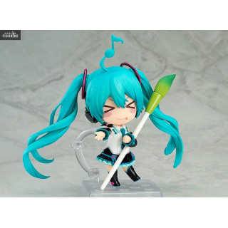Official Hatsune Miku figure in ABS/PVC about 10 centimeters high. It is from the Nendoroid collection. The manufacturer is Good Smile Company.
