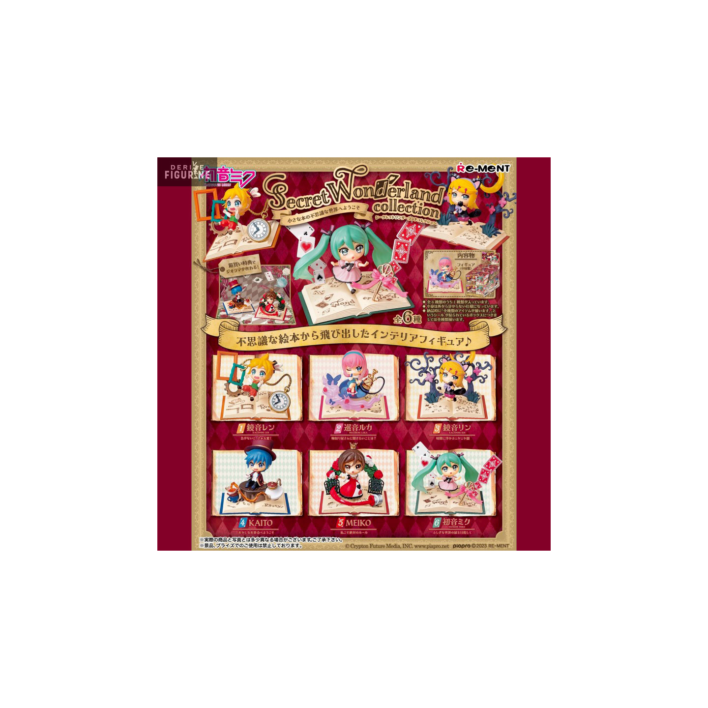 Official random figures or pack of Hatsune Miku in PVC. They are from the Hatsune Miku Secret Wonderland Collection. The manufacturer is Re-Ment.