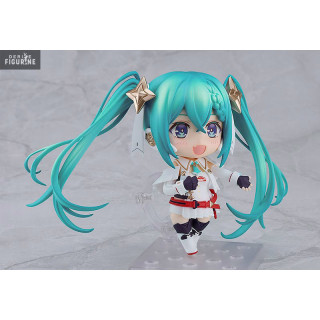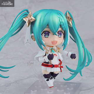 Racing Miku Hatsune, the virtual icon of the Good Smile Racing stable, is a vibrant presence on the motor racing scene. Dressed in a captivating outfit in bright colors, she brings an infectious energy to the team and the fans. His irresistible charm and dazzling smile light up the stands, creating an electric atmosphere during competitions. Although she doesn't take the wheel, Racing Miku embodies the spirit of racing and inspires the team to reach new heights. She is the face of speed, symbolizing the excitement and passion that drives the world of motor racing and here is her adorable Nendoroid figurine.