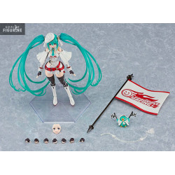 Official figure of Racing Miku, 2023 which measures approximately 15 centimeters high. It is from the Figma collection. The manufacturer is Good Smile Racing.