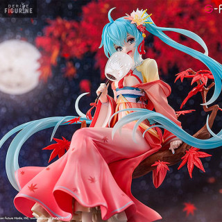 Hatsune Miku is portrayed with incredible grace, her gentle expression, her hair twirling and her clothes waving in the breeze are meticulously reproduced. The figure's meticulous details pay homage to the original artwork, capturing the essence of the song "Yue Xi Jiang" through Miku's visual elements.