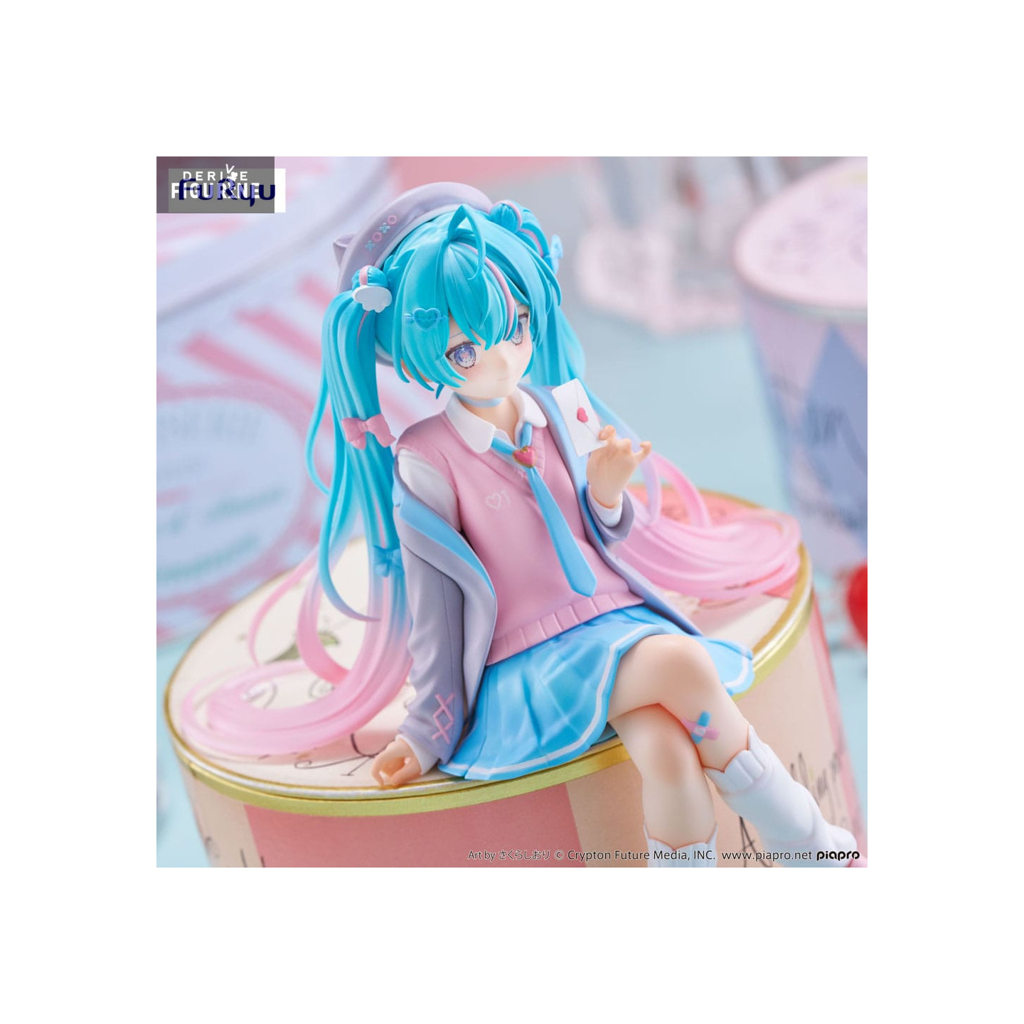 Discover the charming Noodle Stopper figure of Hatsune Miku in her Love Blazer costume, a captivating creation by FuRyu. Delve into the details of this carefully crafted depiction of the famous vocaloid character.