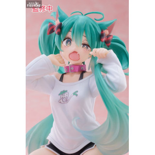 Official figure of Hatsune Miku, Cute in PVC which measures approximately 13 centimeters high. It is from the Desktop Cute collection. The manufacturer is Taito.