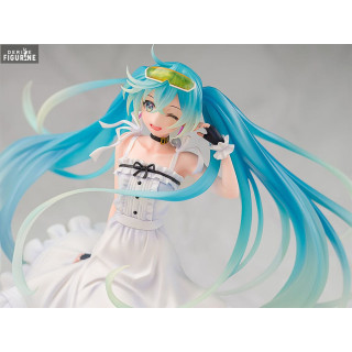 Official figure of Hatsune Miku 2021 Vacation Style, Good Smile Racing which measures approximately 24 centimeters high, scale 1/7. The manufacturer is Wonderful Works.