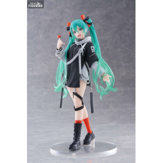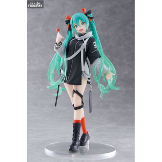 Official figure of Hatsune Miku Fashion, Punk in PVC which measures approximately 18 centimeters high. The manufacturer is Taito.