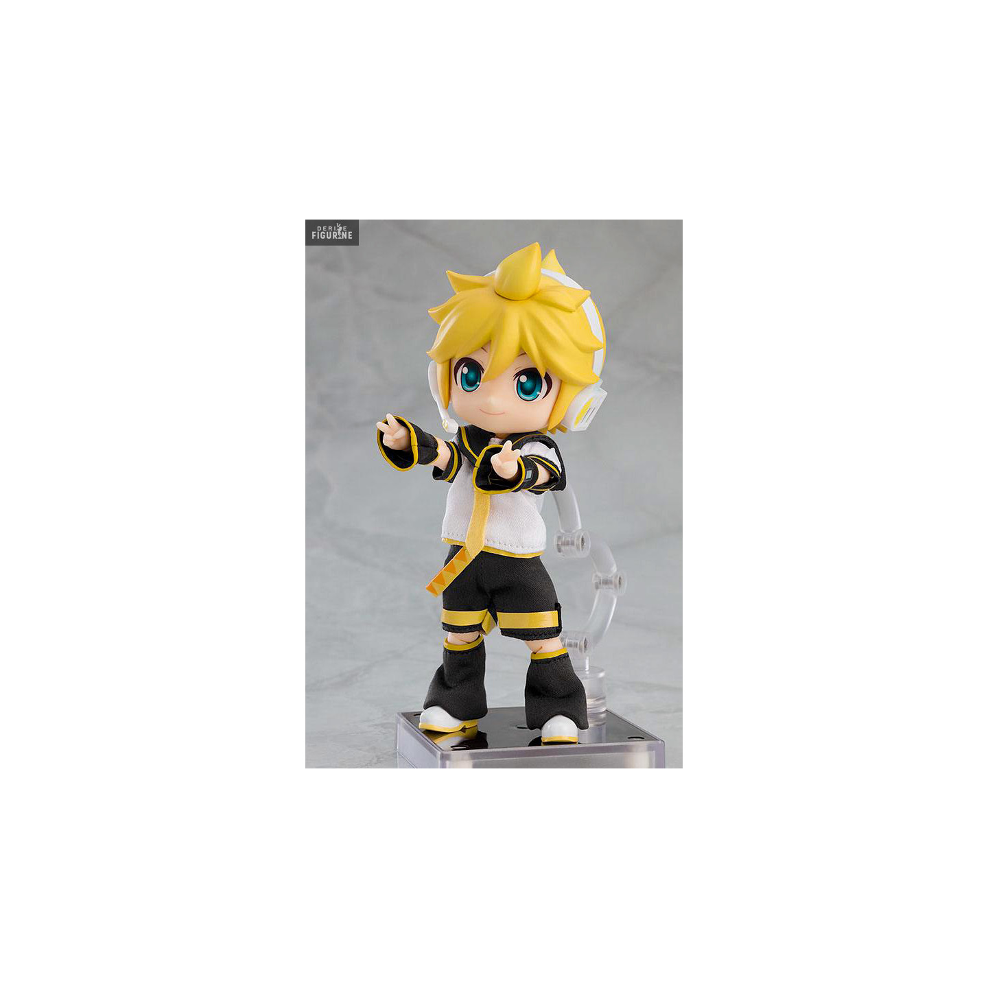 Official figure of Kagamine Len in ABS/PVC which measures approximately 14 centimeters high. It is from the Nendoroid Doll collection. The manufacturer is Good Smile Company.