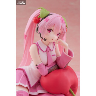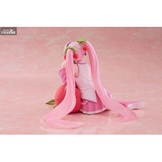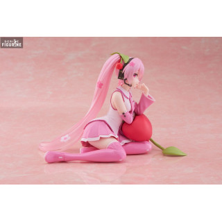 Official figure of Sakura Miku, Cherry Cushion in PVC which measures approximately 13 centimeters high. It is from the Desktop Cute Figure collection. The manufacturer is Taito.