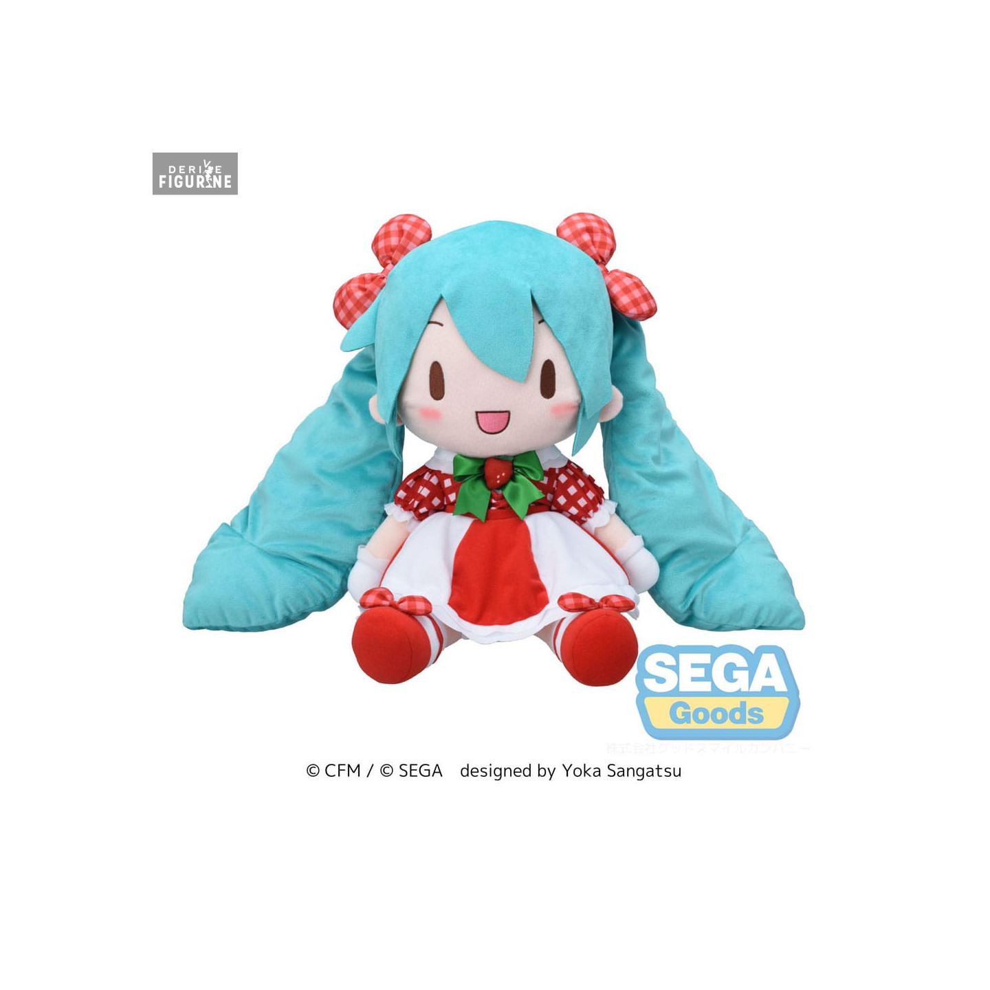 Official plush of Hatsune Miku x Love and Berry Dress Up and Dance! Lovely Strawberry in 100% polyester which measures approximately 40 centimeters high. It is from the Fuwa Petit collection. The manufacturer is SEGA.