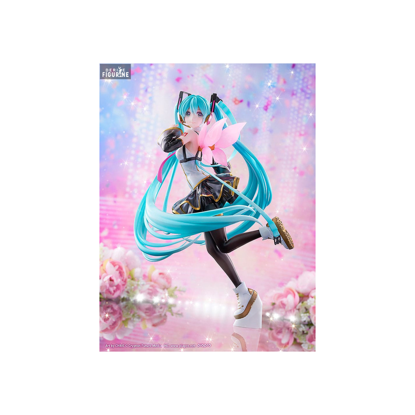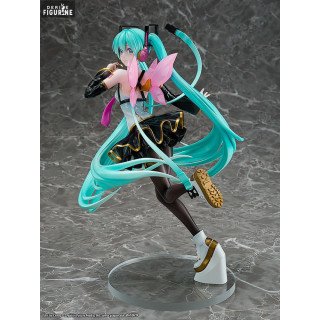 In this elegant fairy-themed version by Pony Canyon, Hatsune Miku’s design takes on a fantastical twist. Her classic outfit is reimagined with magical touches — golden accents along her fluttering skirt, translucent cherry blossom decor at her chest, and flowing ribbons that enhance the movement of the piece. Her sweet, slightly mischievous expression and dynamic pose bring to life a version of Miku that embodies grace, charm, and the lightness of a fairy in mid-dance.