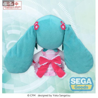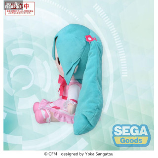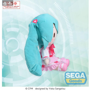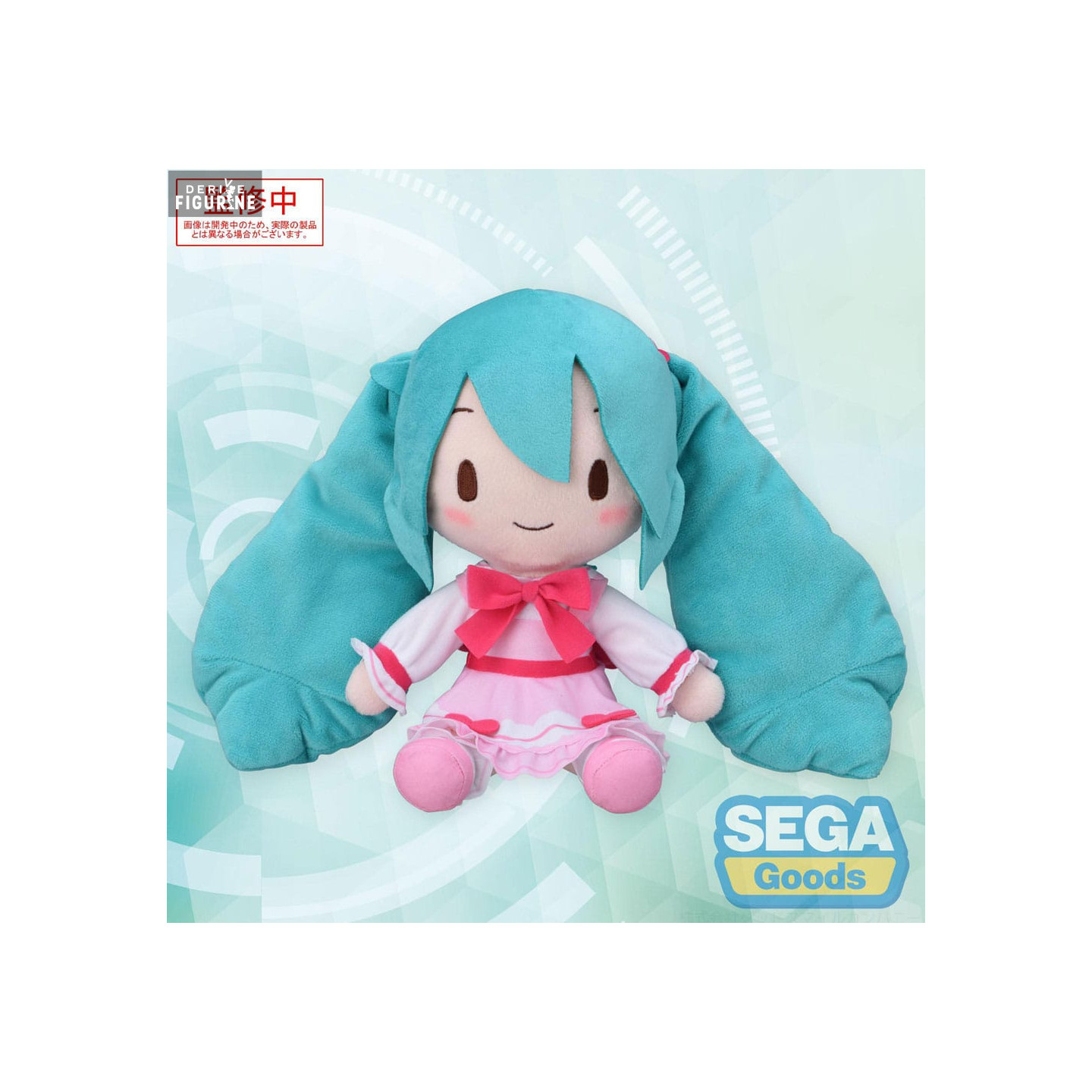 This medium-sized plush stands approximately 24 cm tall and showcases Miku in a sweet pink outfit inspired by her cutest and most delicate Vocaloid visuals. With her ribboned dress, frilly sleeves, and signature turquoise twin-tails made with embroidered details, she exudes irresistible charm. The super-deformed design and soft finish make her perfect for both collectors and fans looking for a cozy companion or cute decor item.