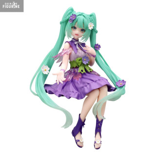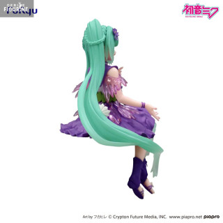 Official figure of Hatsune Miku Flower Fairy Cosmos, Purple Color in PVC which measures approximately 14 centimeters high. It is from the Noodle Stopper collection. The manufacturer is FuRyu.