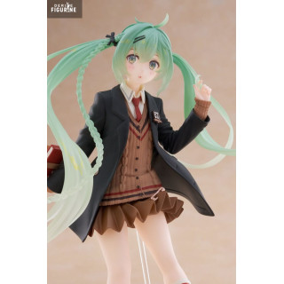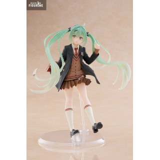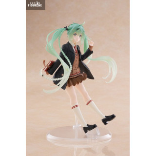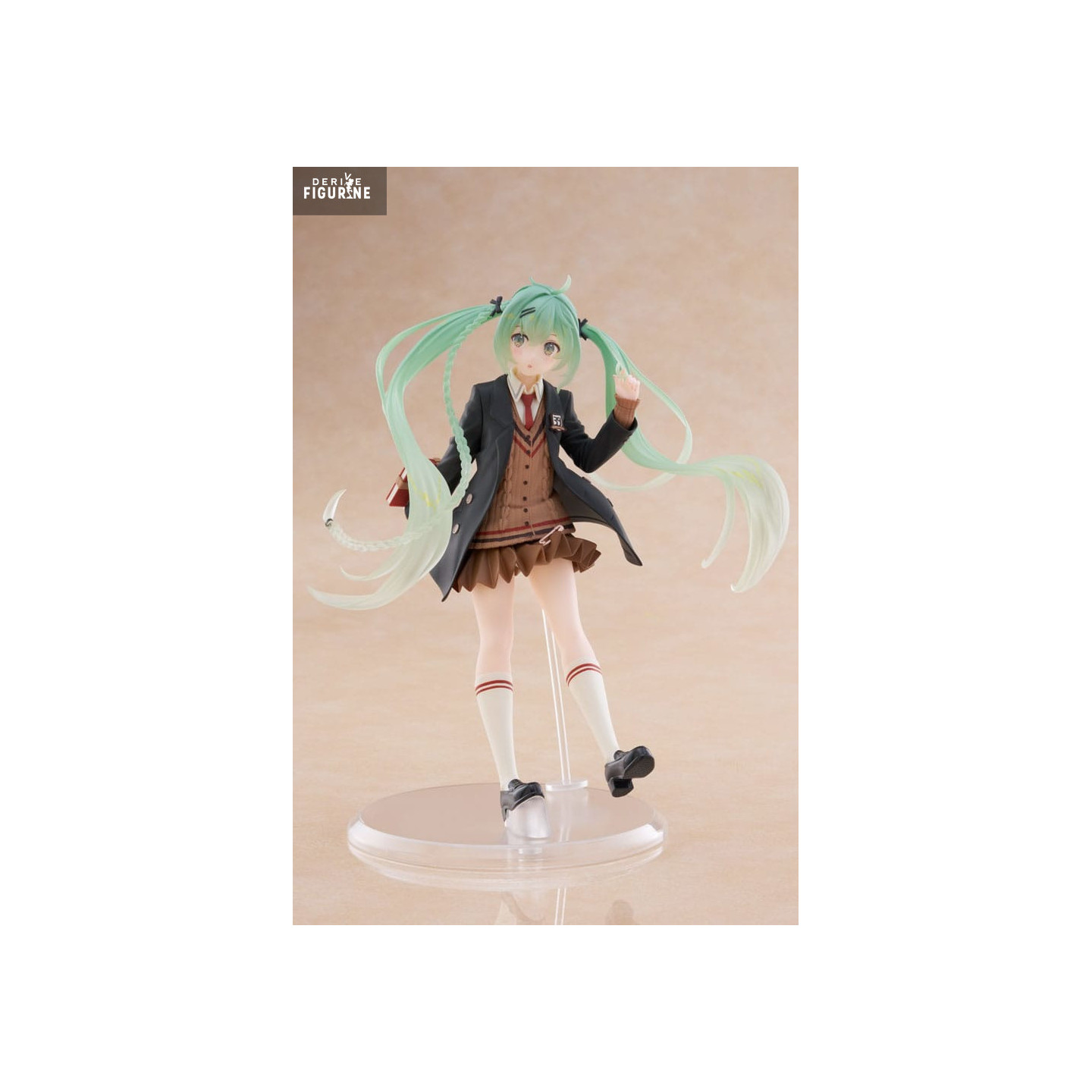 Official figure of Hatsune Miku, Preppy in PVC which measures approximately 18 centimeters high. It is from the Fashion collection. The manufacturer is Taito.