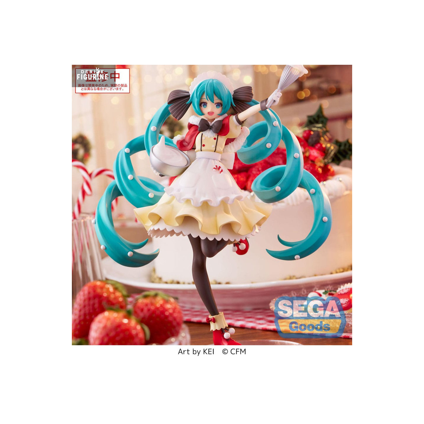 Official figure of Hatsune Miku, Christmas 2025 in PVC which measures approximately 20 centimeters high. It is from the Luminasta collection. The manufacturer is SEGA.