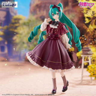 In this Classical Retro European Exclusive edition, Hatsune Miku enchants you with an elegant, nostalgic journey through a romantic autumnal Europe. You instantly recognize the virtual idol, reimagined in vintage haute couture style, where every detail exudes timeless charm.