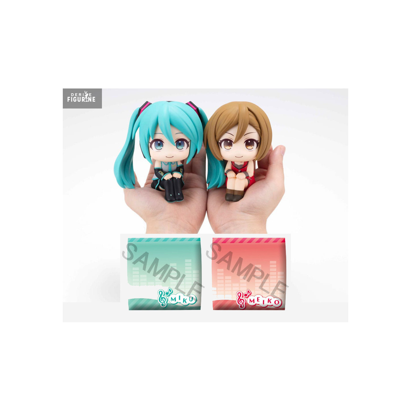 Official figures of Hatsune Miku & Meiko, (with gift) in PVC which measure approximately 11 centimeters high. They are from the Look Up collection. The manufacturer is Megahouse.