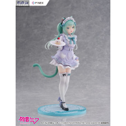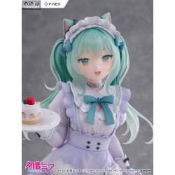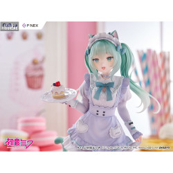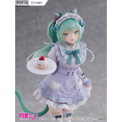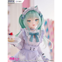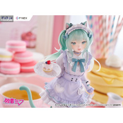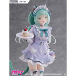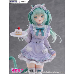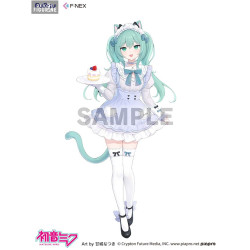 This version of Miku comes from a special collaboration with illustrator Amashiro Natsuki, known for her soft, dreamy, and pastel-inspired art style. Here, Miku becomes a charming cat café waitress—far from her usual futuristic image, yet irresistibly sweet.
