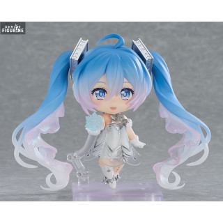 Always cheerful and elegant, this chibi-style Miku adopts the adorable features typical of the Nendoroid collection. She is shown in a silver dress with sculpted details, dynamic posture, and multiple facial expressions, offering a variety of display options. The design remains true to her character while incorporating visual elements of the concert.