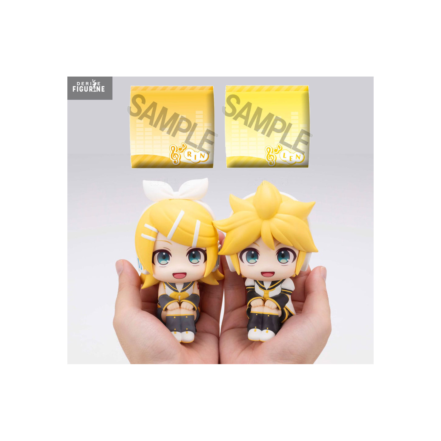 Official figures of Kagamine Rin & Len, (with gift) in PVC which measure approximately 11 centimeters high. They are from the Look Up collection. The manufacturer is Megahouse.