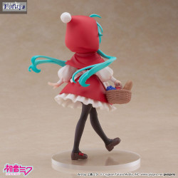 Official figure of Hatsune Miku, Little Red Riding Hood in PVC which measures approximately 16 centimeters high. It is from the Desktop Fairy collection. The manufacturer is FuRyu.