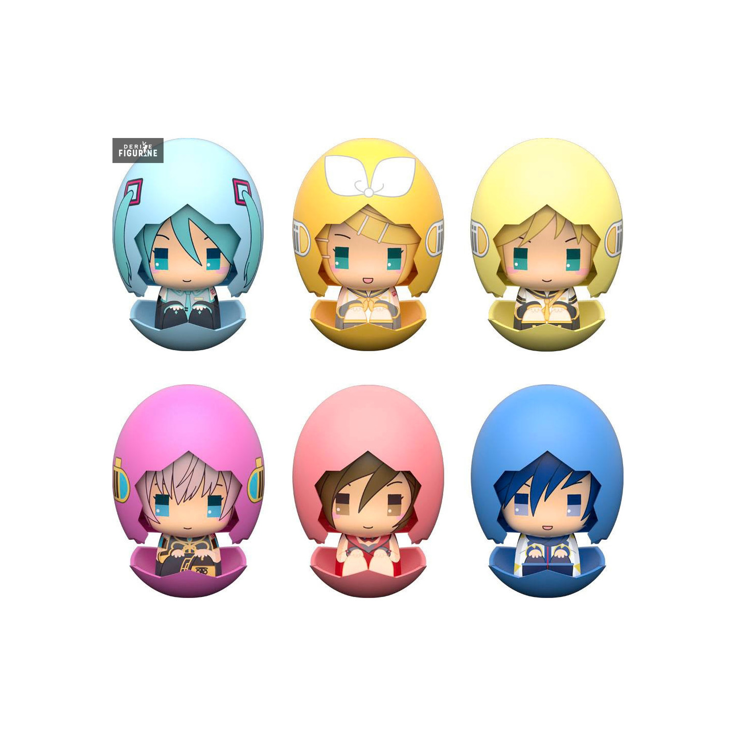 Here are six small colorful eggs that each contain a small figurine that should appeal to fans of vocaloids. So we have the following characters: