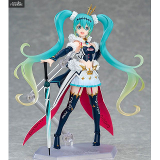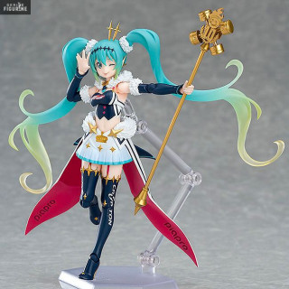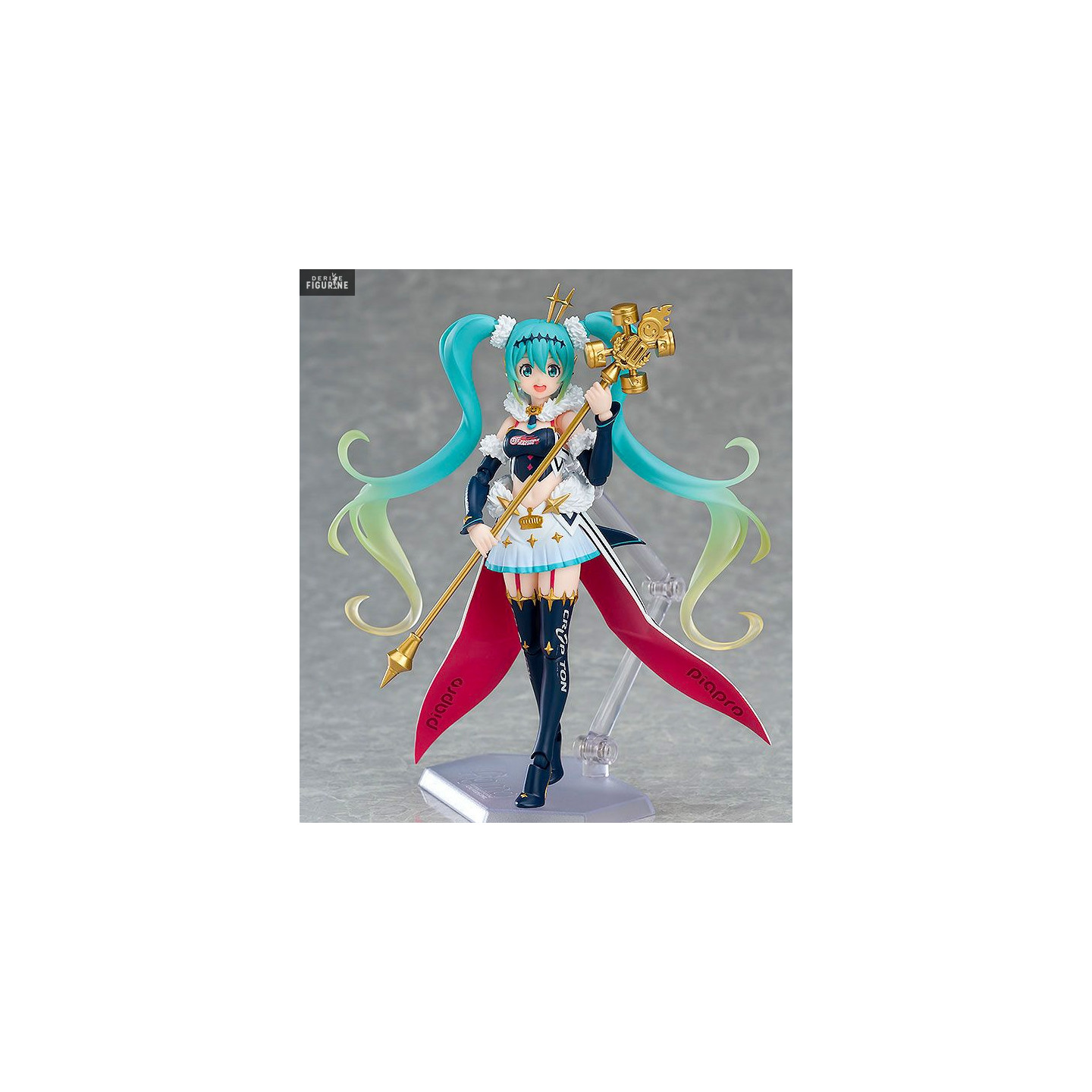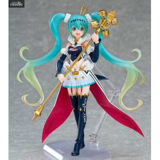 As you can see with this new figure, Miku Hatsune is a motorsport fan. This time, it reminds us of a queen with her mini crown and scepter. In addition to this, it is sold with an interchangeable head and other accessories.