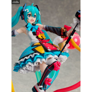 Official figure of Miku Hatsune in PVC measuring approximately 24 centimeters high, scale 1/7. The manufacturer is FuRyu.