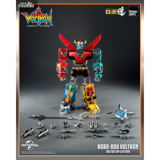 Official figure of Voltron, Retro Toy Edition which measures approximately 27 centimeters high. The manufacturer is ThreeZero.