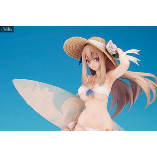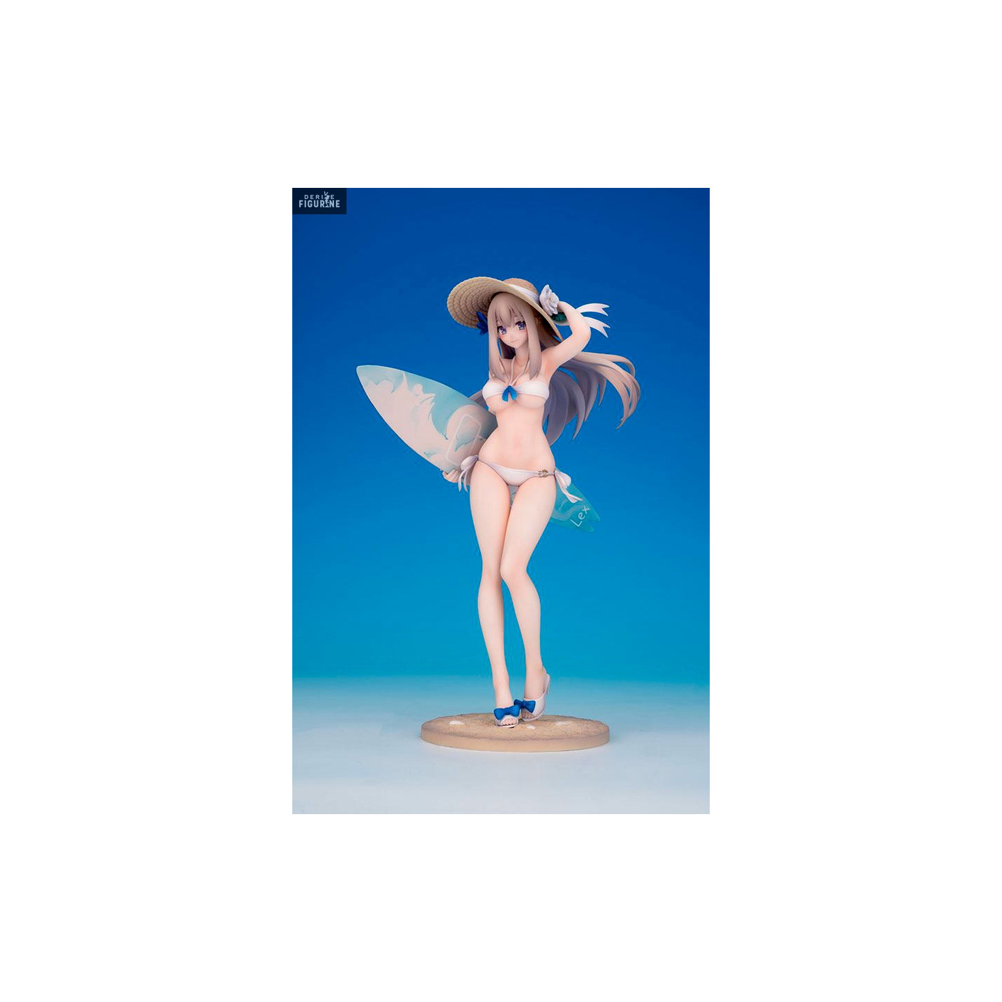 Here is the pretty Lexington and as you can see she is wearing a white swimsuit. Besides, she would have done better to take the size above because it is a little small. She also has a straw hat and a surfboard under her arm.