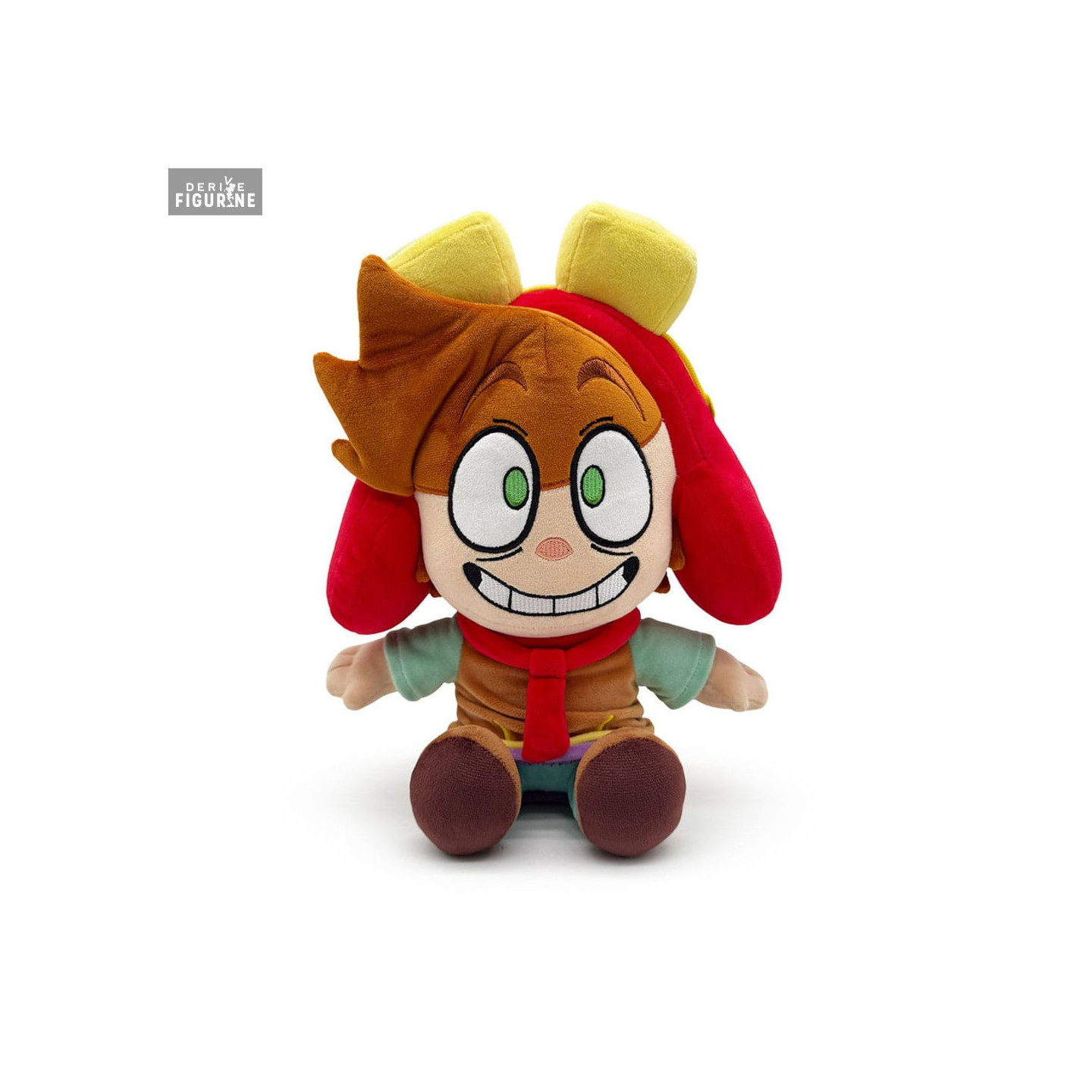 This 22 cm plush captures his blend of innocence and menace in 100 % polypropylene: large green eyes reflect his cunning, a tuft of orange hair peeks from beneath his red earflap cap, and his red scarf hints at his inner turmoil. His mint-green sweater and brown pants, accented with colored stitching, faithfully recreate his graphic-novel look.