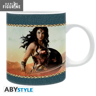 Here is a nice mug whose image is taken from the movie Wonder Woman. One sees there are emblem, as well as the beautiful Gal Gadot in Amazone held.