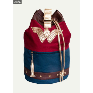 This backpack has a side a little retro because of its shape because it recalls the bags that the sailors wore on the shoulder when they went to sea. But here it is a backpack with two straps in the colors of Wonder Woman. Personally I find that it is really original and well realized.
