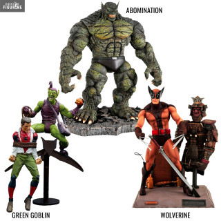 Official figure of your choice between Green Goblin (~18 cm), Wolverine (~18 cm) or Abomination (~23 cm). It is from the Select collection. The manufacturer is Diamond Select Toys.