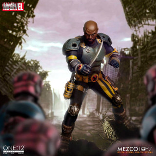 Official figure of Bishop which measures approximately 17 centimeters high, scale 1/12. It is from the One:12 collection. The manufacturer is Mezco Toys.