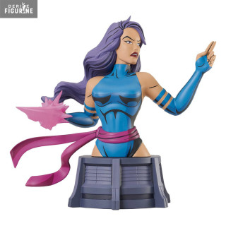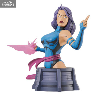 Official bust of Psylocke in resin which measures about 15 centimeters high, scale 1/7. The manufacturer is Diamond Select Toys.