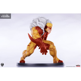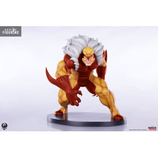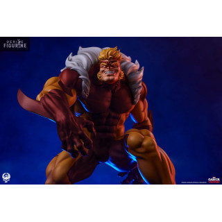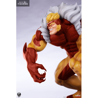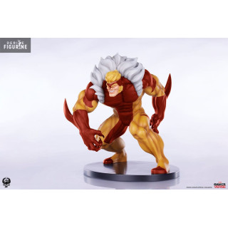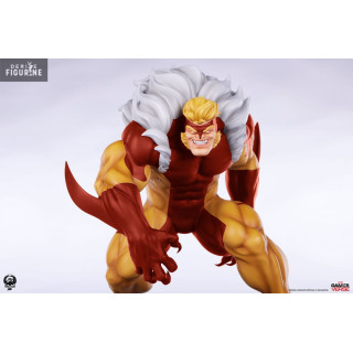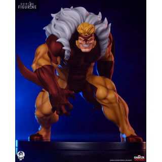 Sabretooth, also known as Victor Creed, is a formidable foe of Wolverine and an iconic villain in the Marvel Universe. With his superhuman strength, heightened senses and deadly retractable claws, he embodies pure brutality and ferocity. This captivating figure perfectly captures his essence, with his wild gaze and menacing posture.