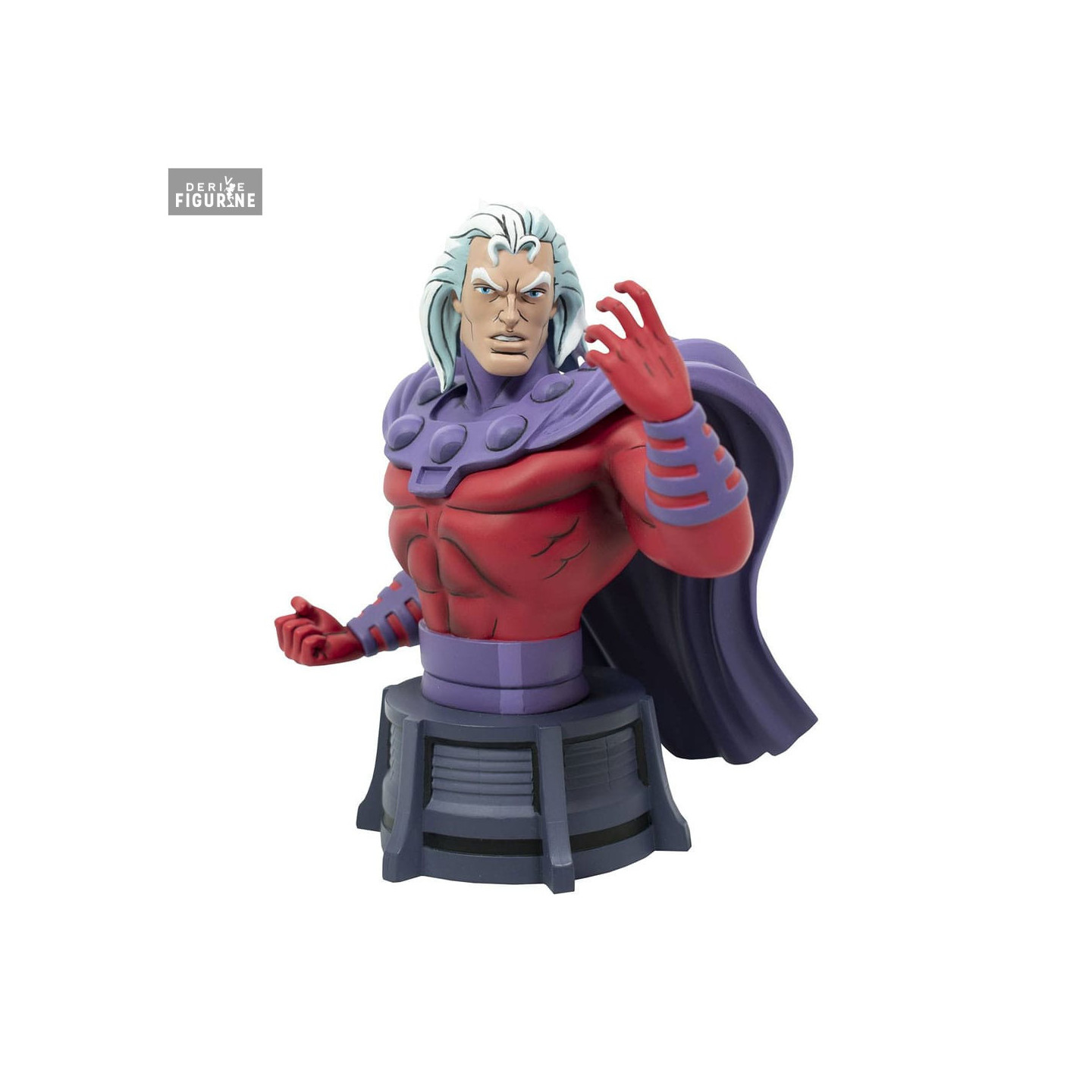 Official bust of Magneto, Unhelmeted in resin which measures approximately 15 centimeters high, scale 1/7. The manufacturer is Diamond Select Toys.