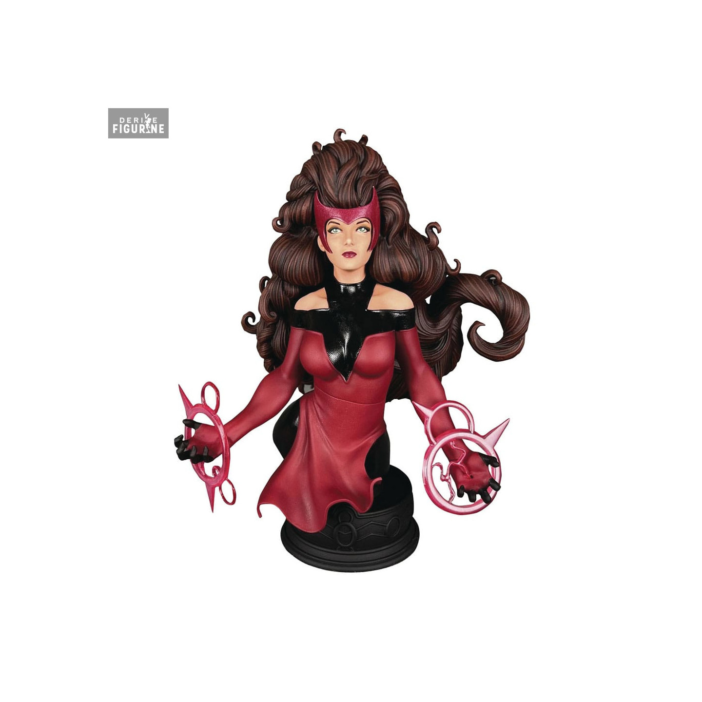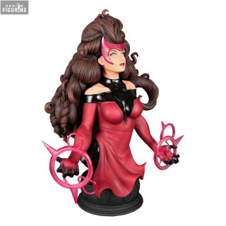 Official bust of Scarlet Witch in resin which measures approximately 13 centimeters high, scale 1/7. The manufacturer is Diamond Select Toys.