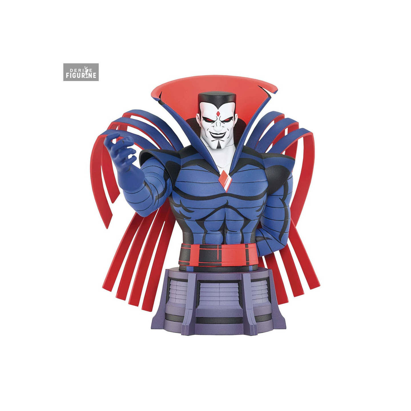 The X-Men universe is filled with conflicts between mutants and humans, with figures like Mister Sinister orchestrating events from the shadows. His intimidating appearance, featuring pale skin, piercing red eyes, and his striking blue and red costume, makes him both a fascinating and fearsome character. This bust perfectly captures his menacing stance and sinister smirk, paying tribute to his portrayal in the classic 90s animated series.