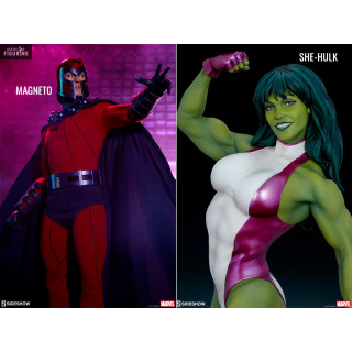 Official Magneto Figurine (X-Men (30 cm 1/6) Fabric Clothes or She-Hulk (Adi Granov Artist Series Resin 44x18x20). The manufacturer is Sideshow Collectibles. Informations in description.