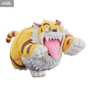 Kagetora is bursting in with claws out, tongue flailing, and full-on chaos mode activated. This official Banpresto figure packs all the charm and madness of the bouncing, yellow-striped furball into a tiny, 9 cm bundle. With wild eyes and exaggerated features, he’s equal parts mascot and mayhem—a figure that’s here to bring the fun.